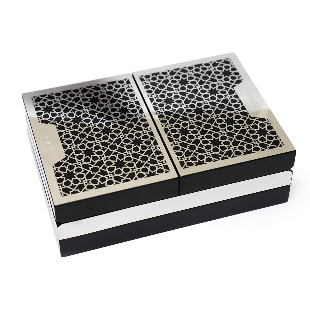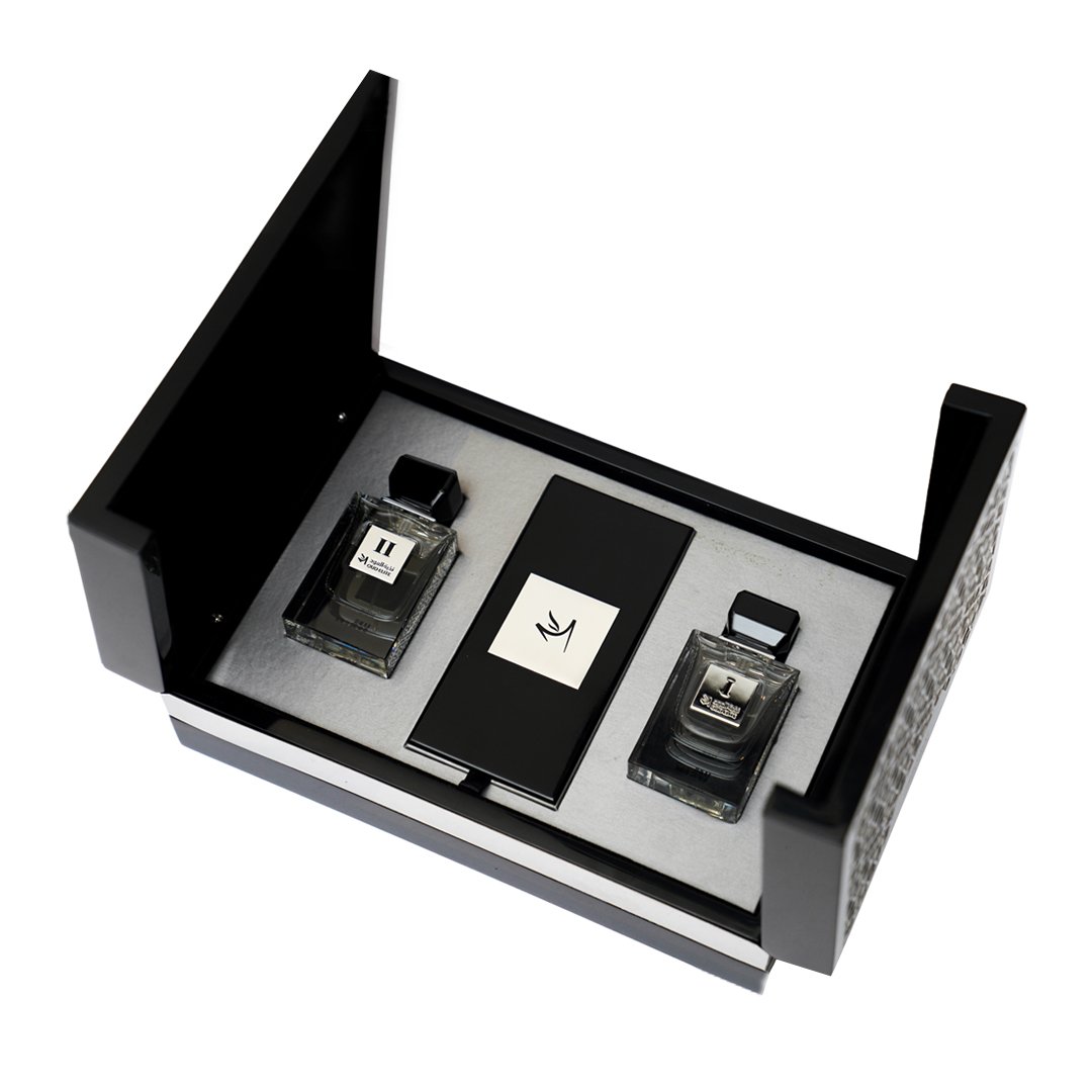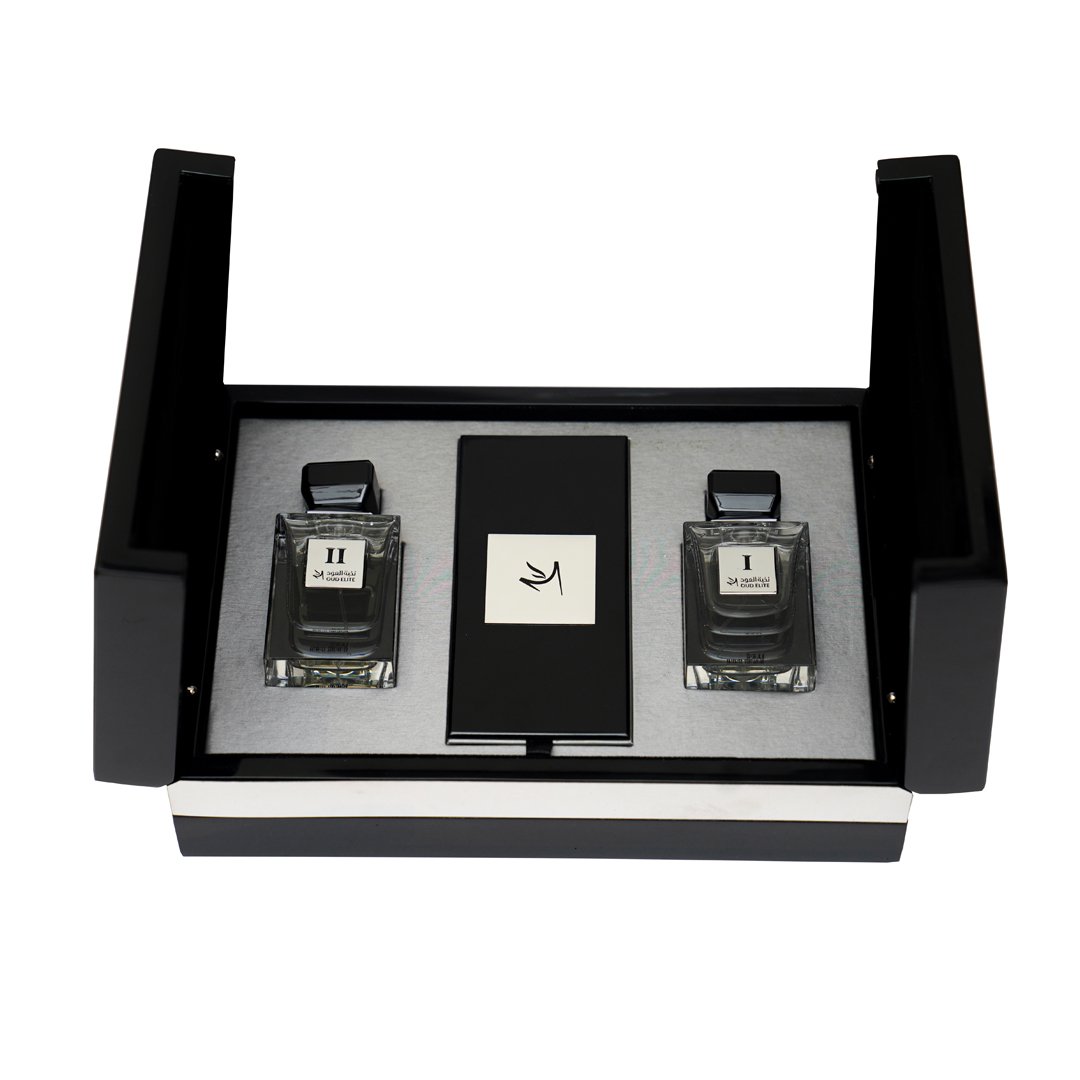 تناغم الروائح والرقي الذي يميز هذه المجموعة التي تحتوي على اثنين من العطور بحجم 50 مل، وخشب العود الفاخر بوزن 60 جرام شنطة